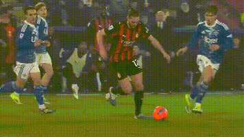 比赛开始仅仅10分钟,主队就依靠肯普夫的头球破门,1-0领先AC米兰。在客场,AC米兰的进攻一度陷入困境,好在关键时刻,拉比奥特站了出来。半场结束前,他在禁区内拿球被犯规,AC米兰拿到点球机会,随后恩昆库主罚破门,为球队扳平比分。下半场第55分钟,莱奥左路突破后挑传,拉比奥特接球扫射打进死角,AC米兰2-1反超比分。